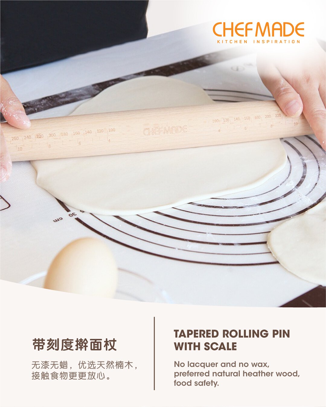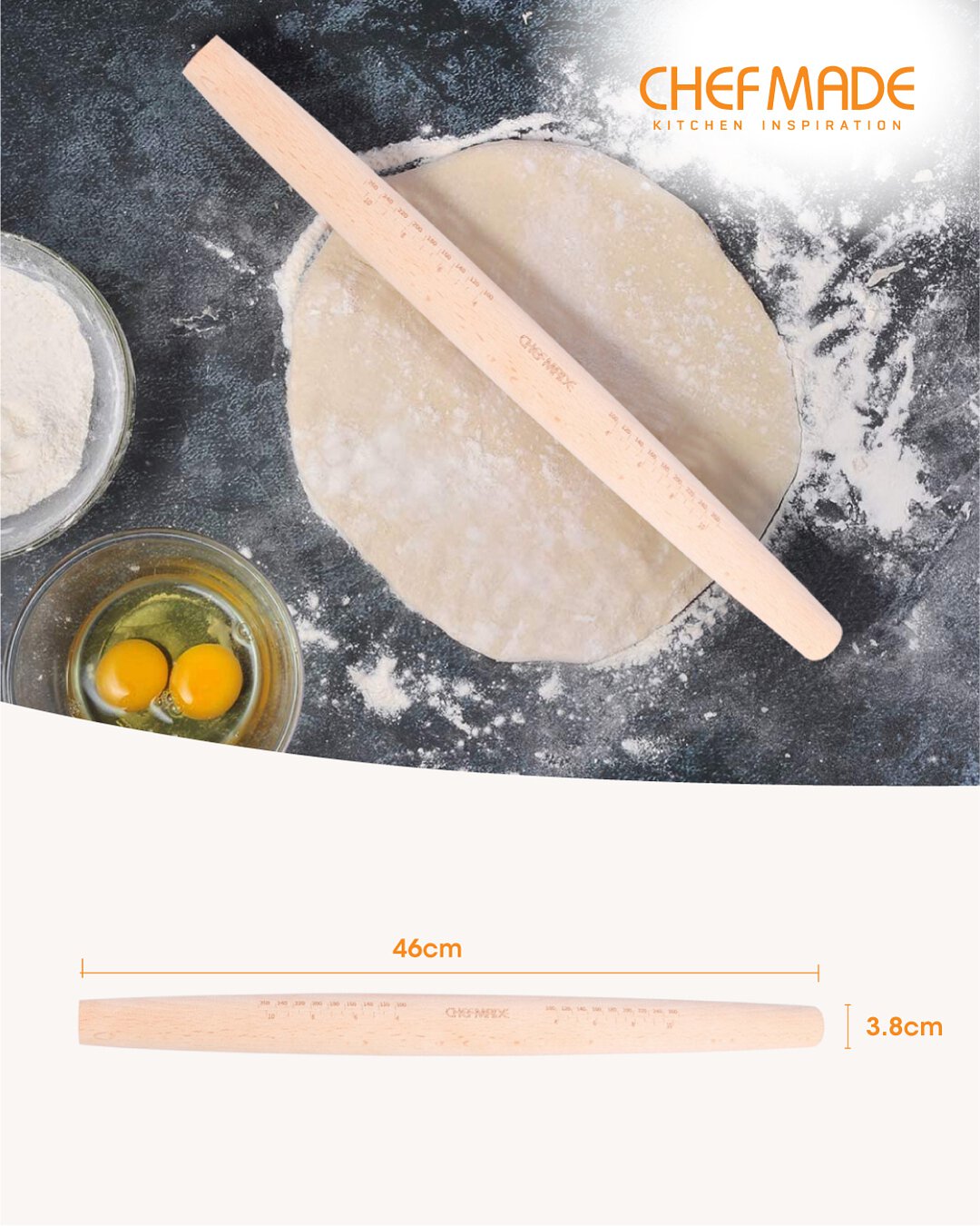 Chefmade 18” Tapered Rolling Pin