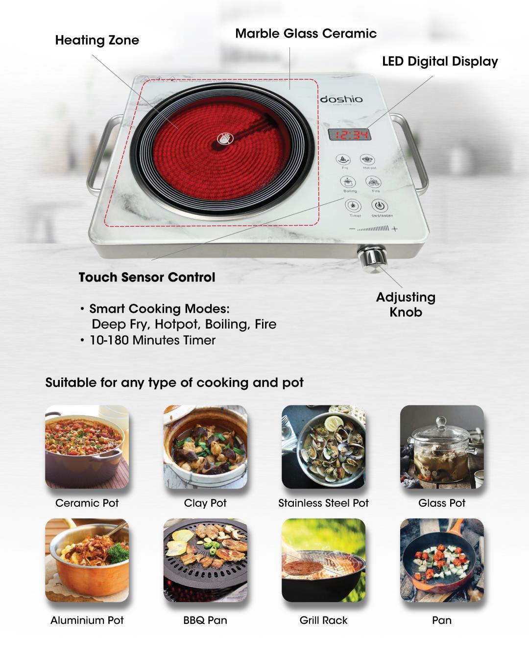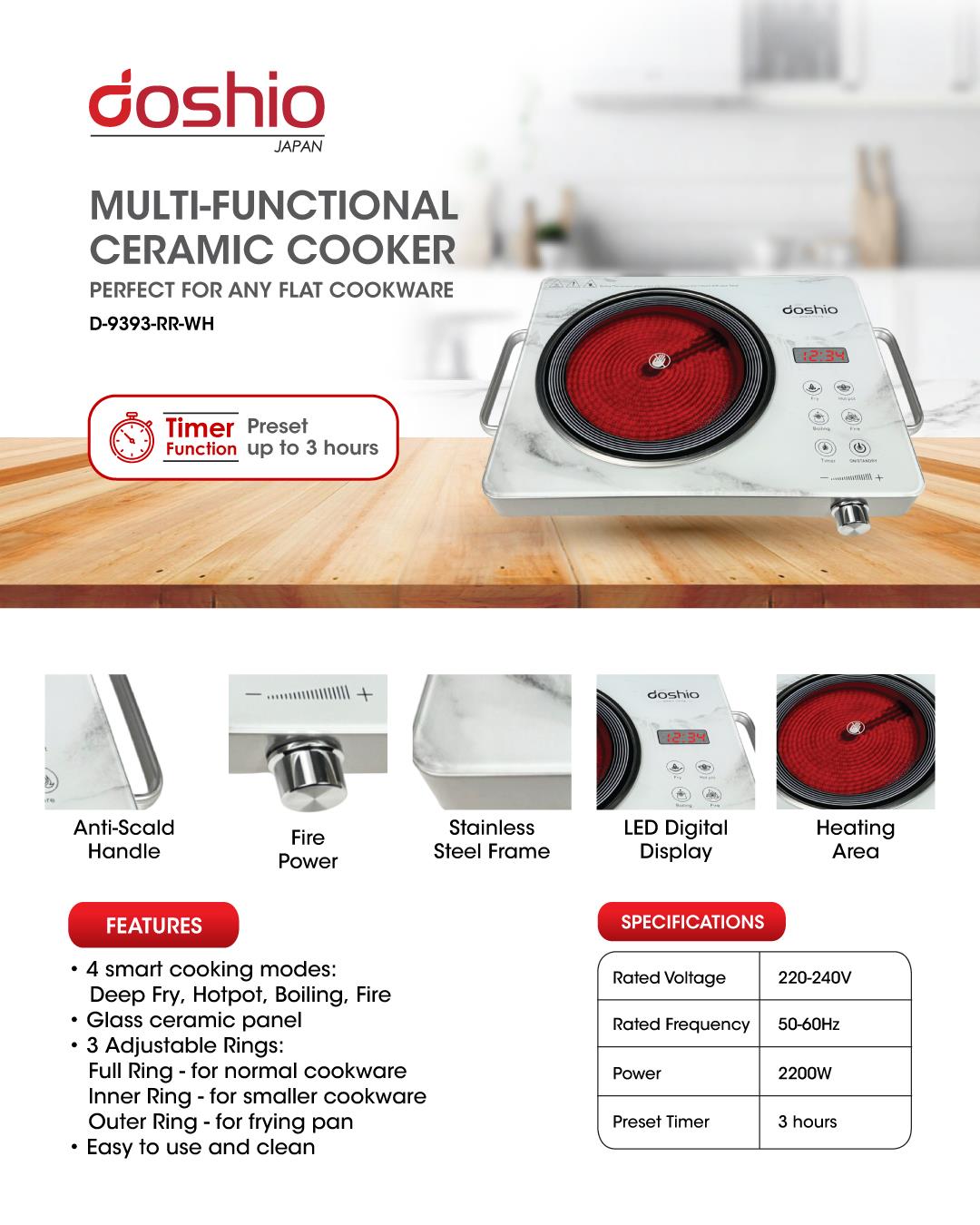 Doshio Multi-Functional Ceramic Cooker (White) Free Oasis Home PP-Woven Bag