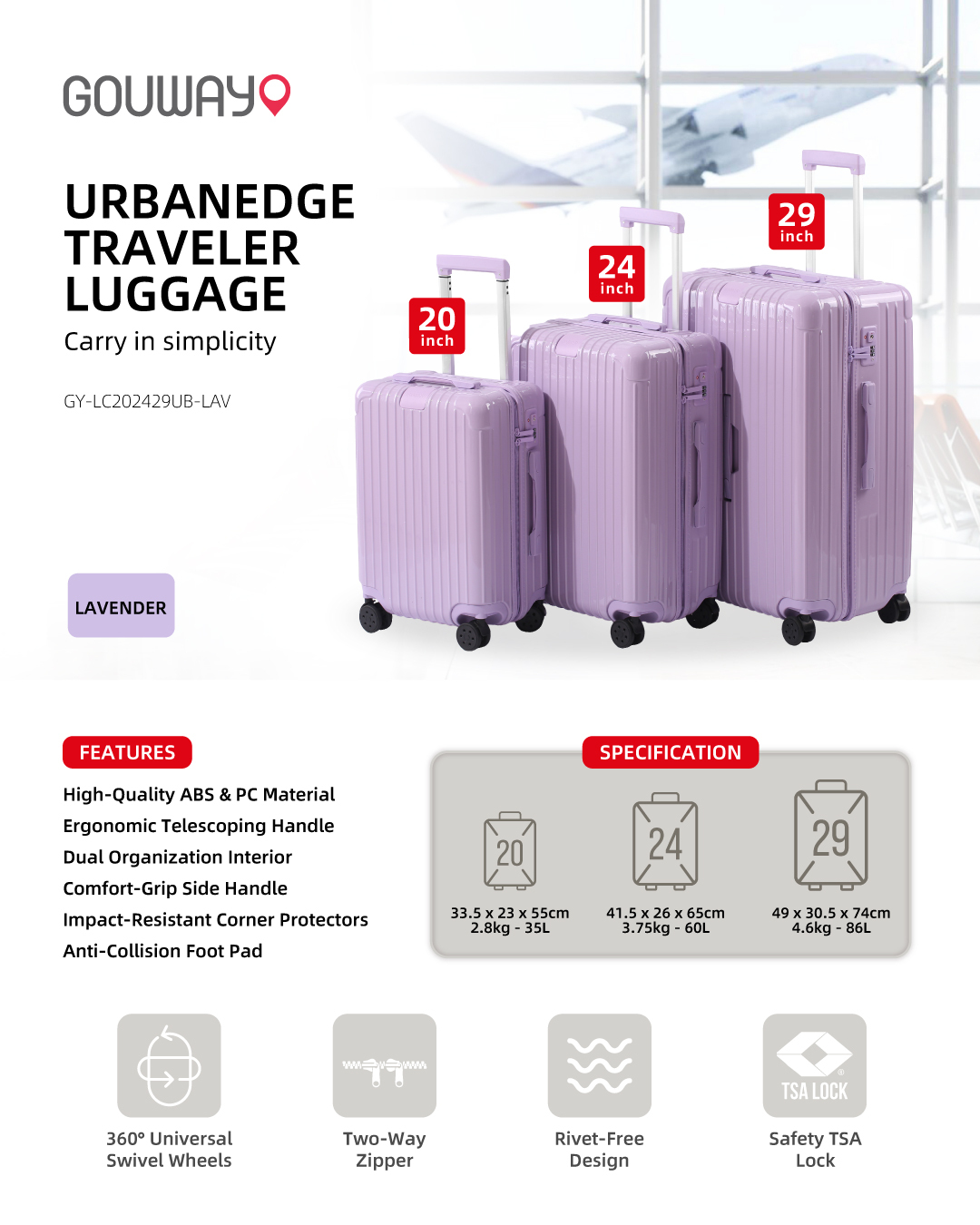 Gouway Urban Edge Traveler Luggage 3pcs set - Lavender colour