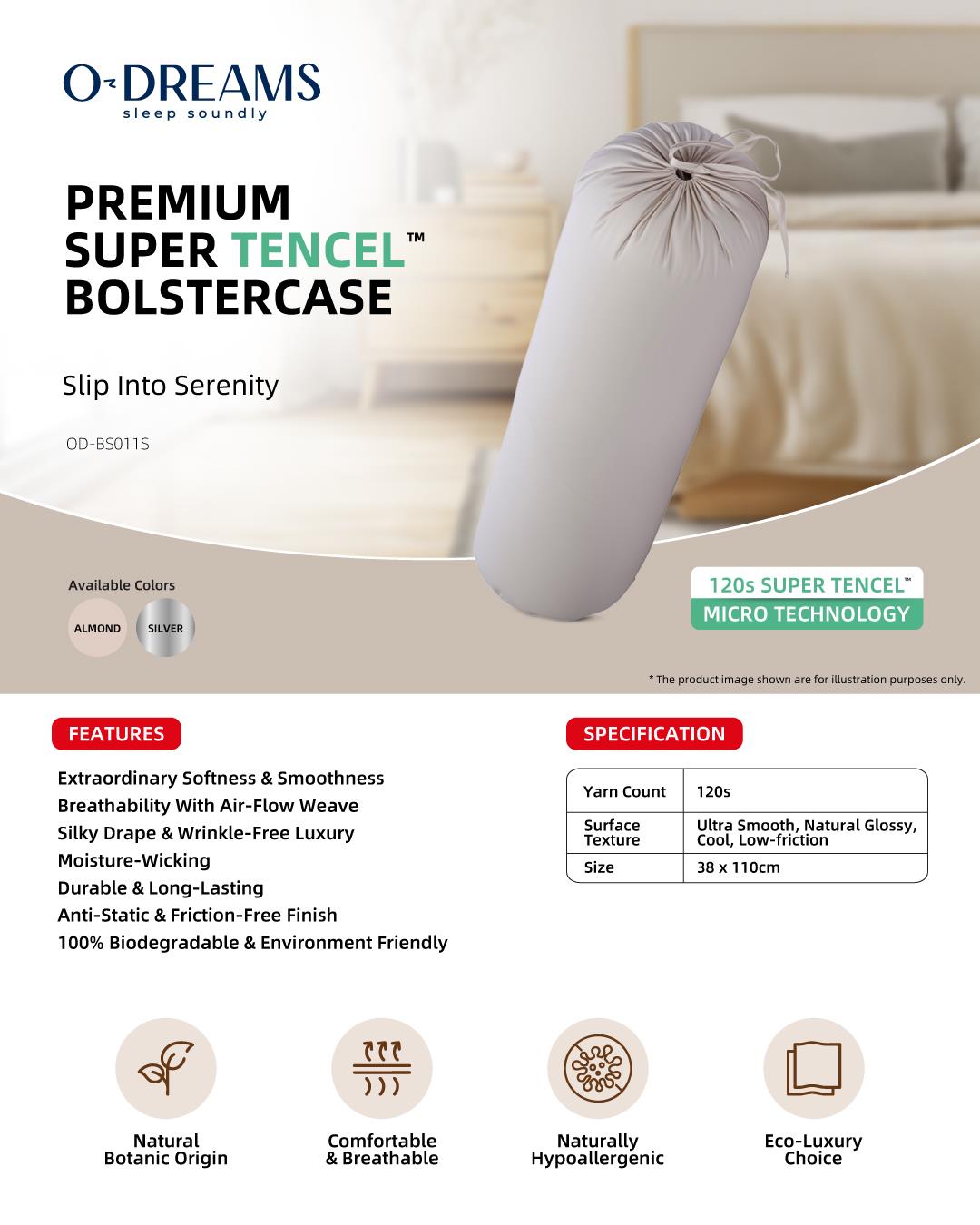 ODREAMS Premium Super Tencel™️ Bolstercase