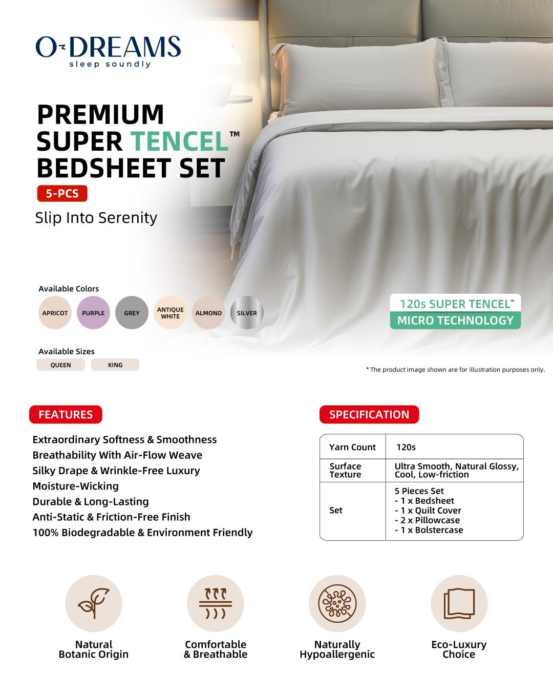 ODREAMS Premium Top Micro Tencel™️ 5 Pcs Bedsheet Set