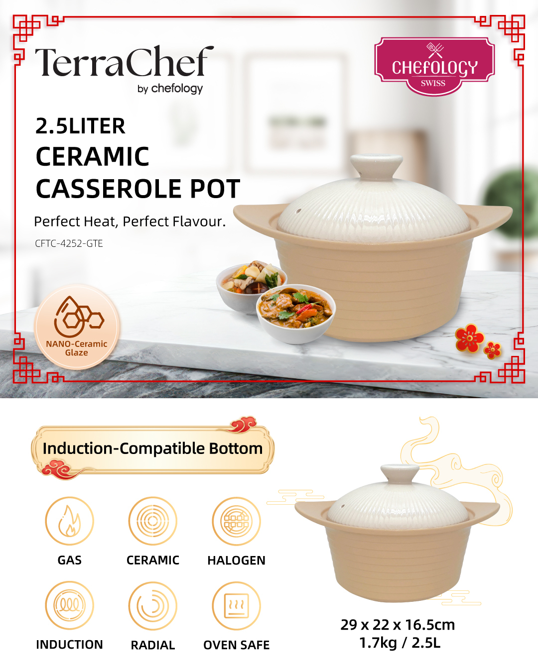 TerraChef Ceramic Casserole Pot 2.5L by Chefology