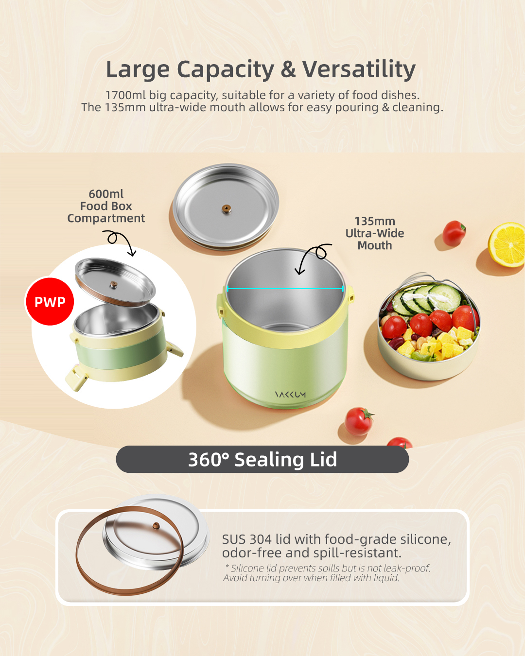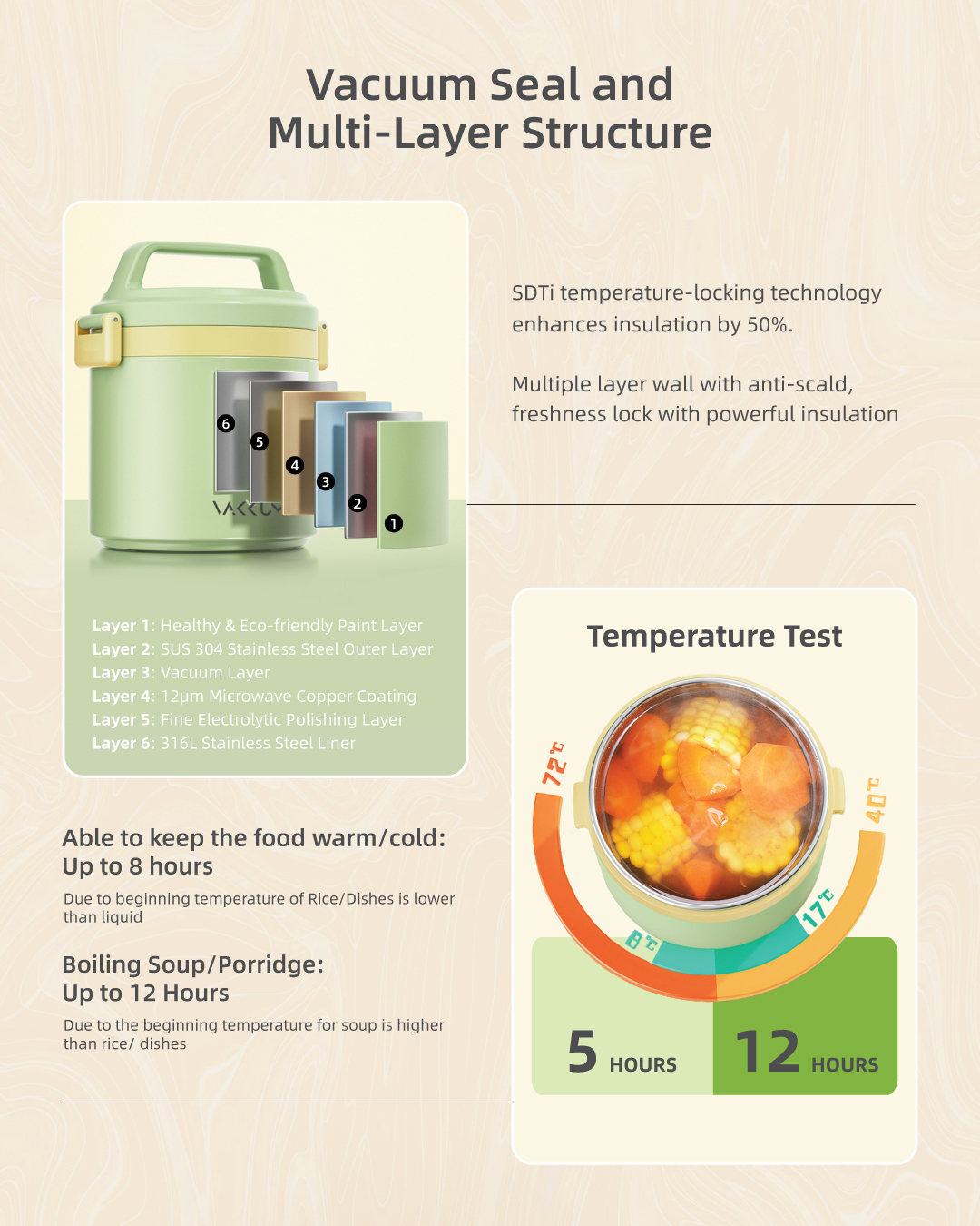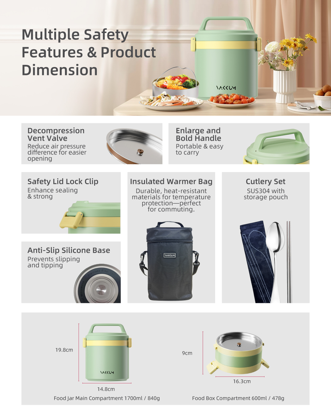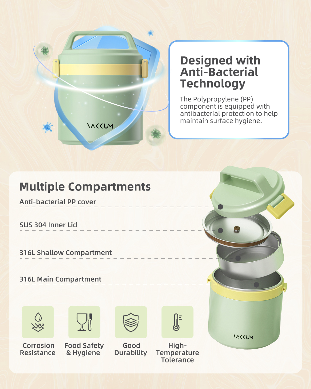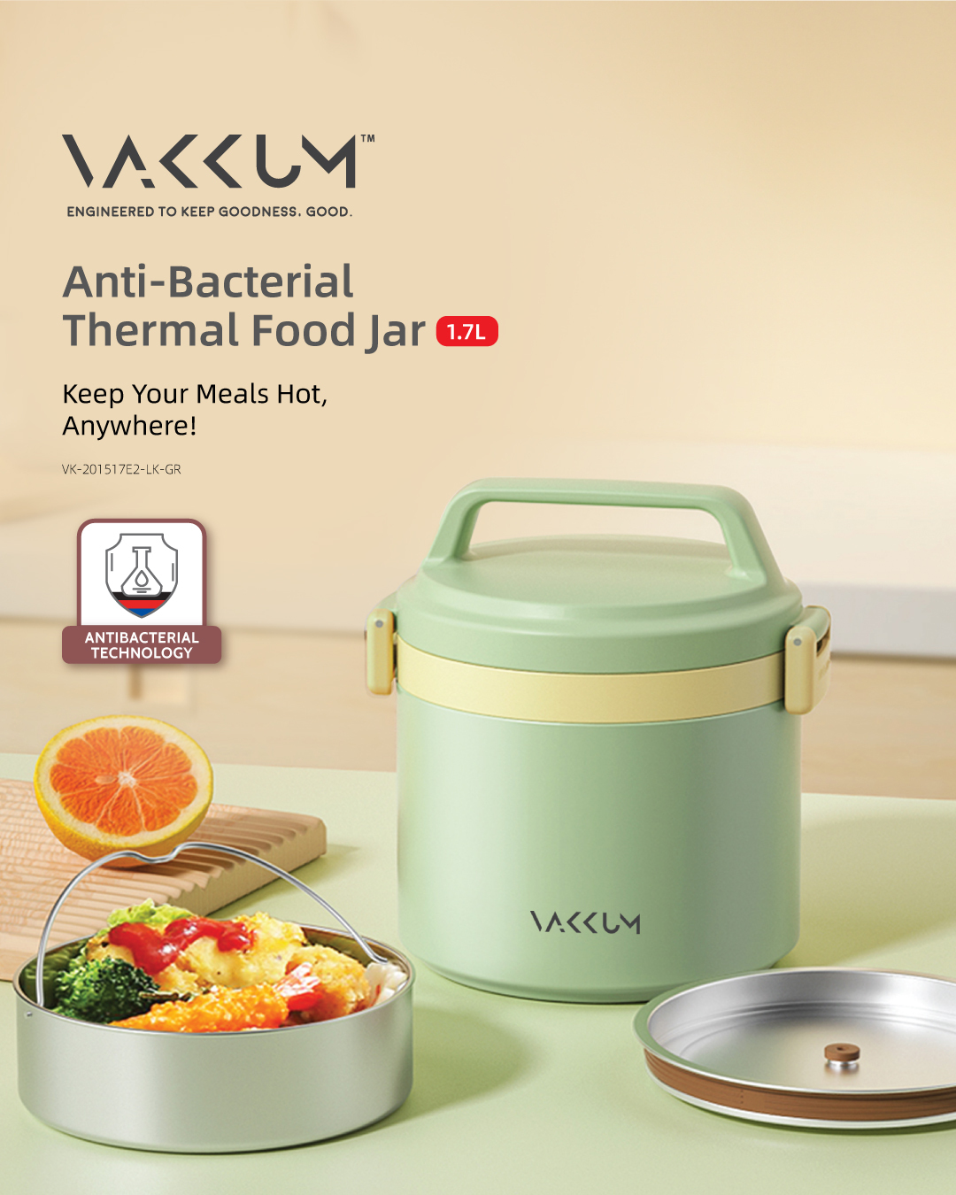Vakkum Anti Bacteria Stainless Steel 316 Thermal Food Jar 1.7L (Green)