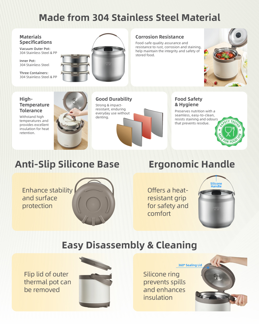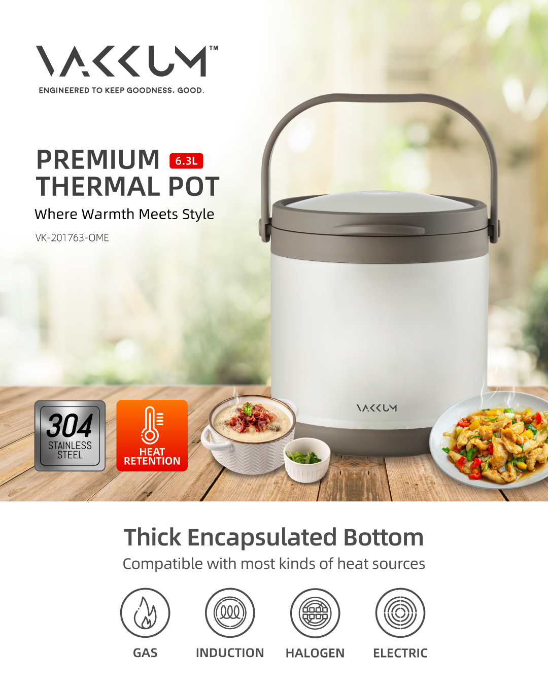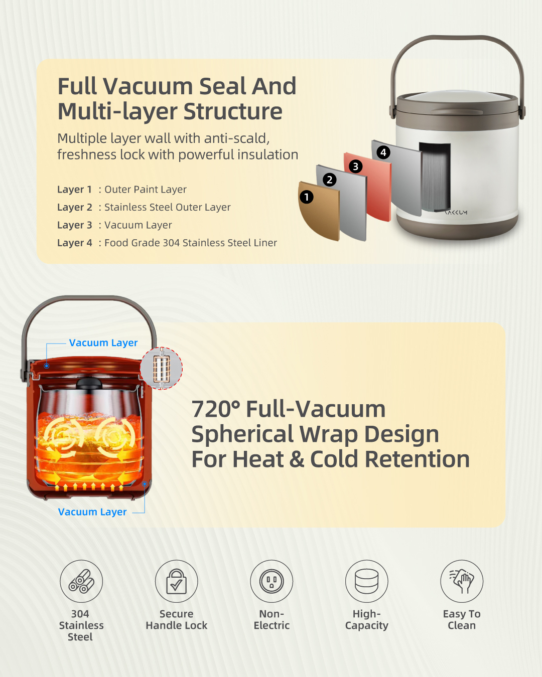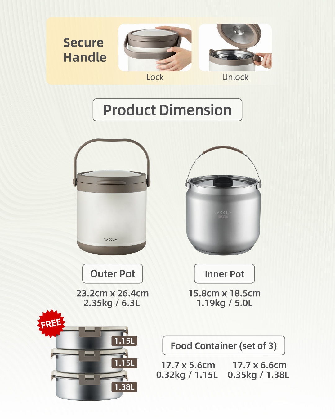 Vakkum Premium 304 Stainless Steel Thermal Pot free Vakkum Premium 304 Stainless Steel Three Layer Inner Food Container